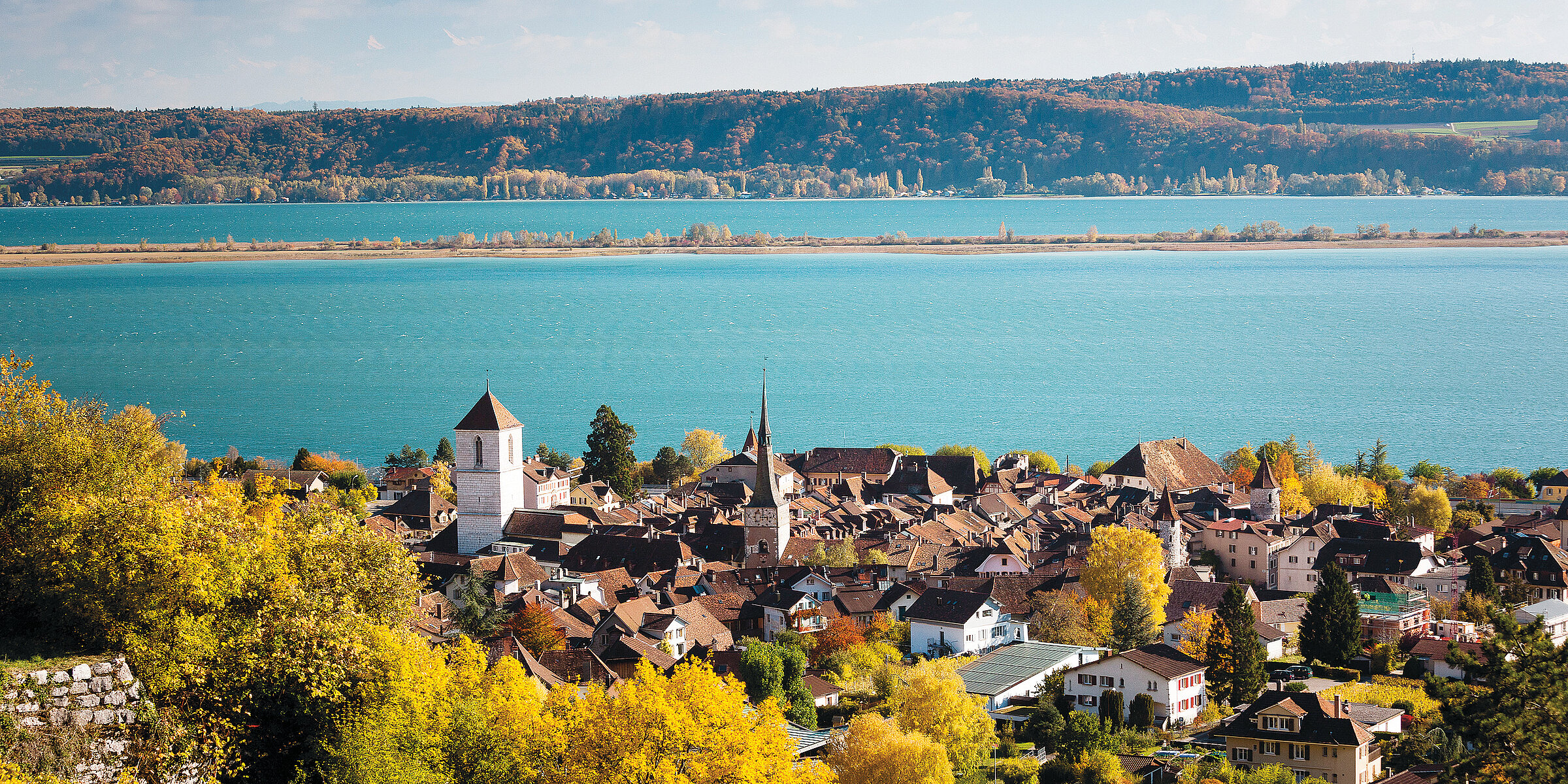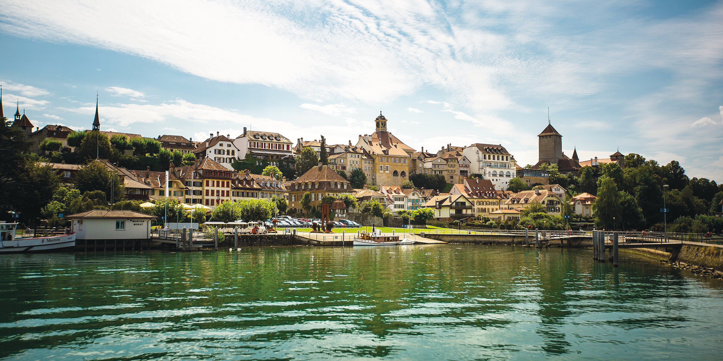 Entdecken Sie die schönsten Aussichtspunkte von Murten, gehen Sie über die einzigartige begehbare Ringmauer und flanieren Sie durch die Lauben der Hauptgasse mit den vielfältigen Geschäften.